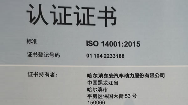 ISO(14001:2015)認證證書(shū)
