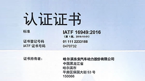 IATF(16949:2016)認證證書(shū)